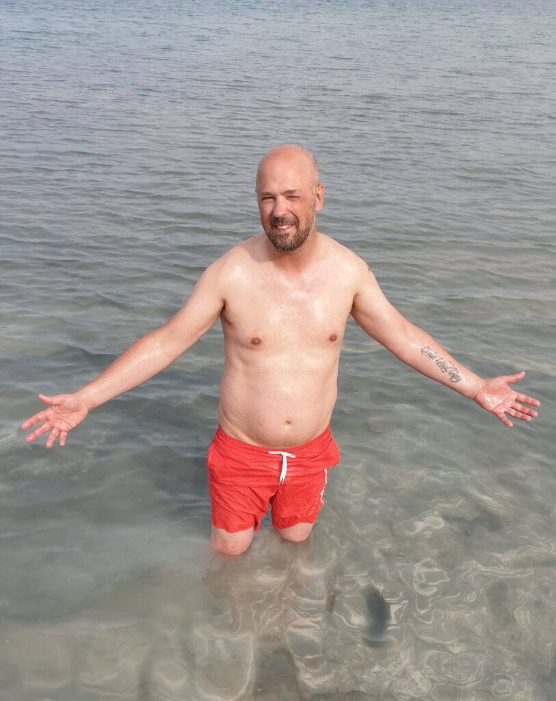 De första metrarna ut bestod botten av meterdjup lera som lite längre ut övergick till knivspetsar av saltkristaller.